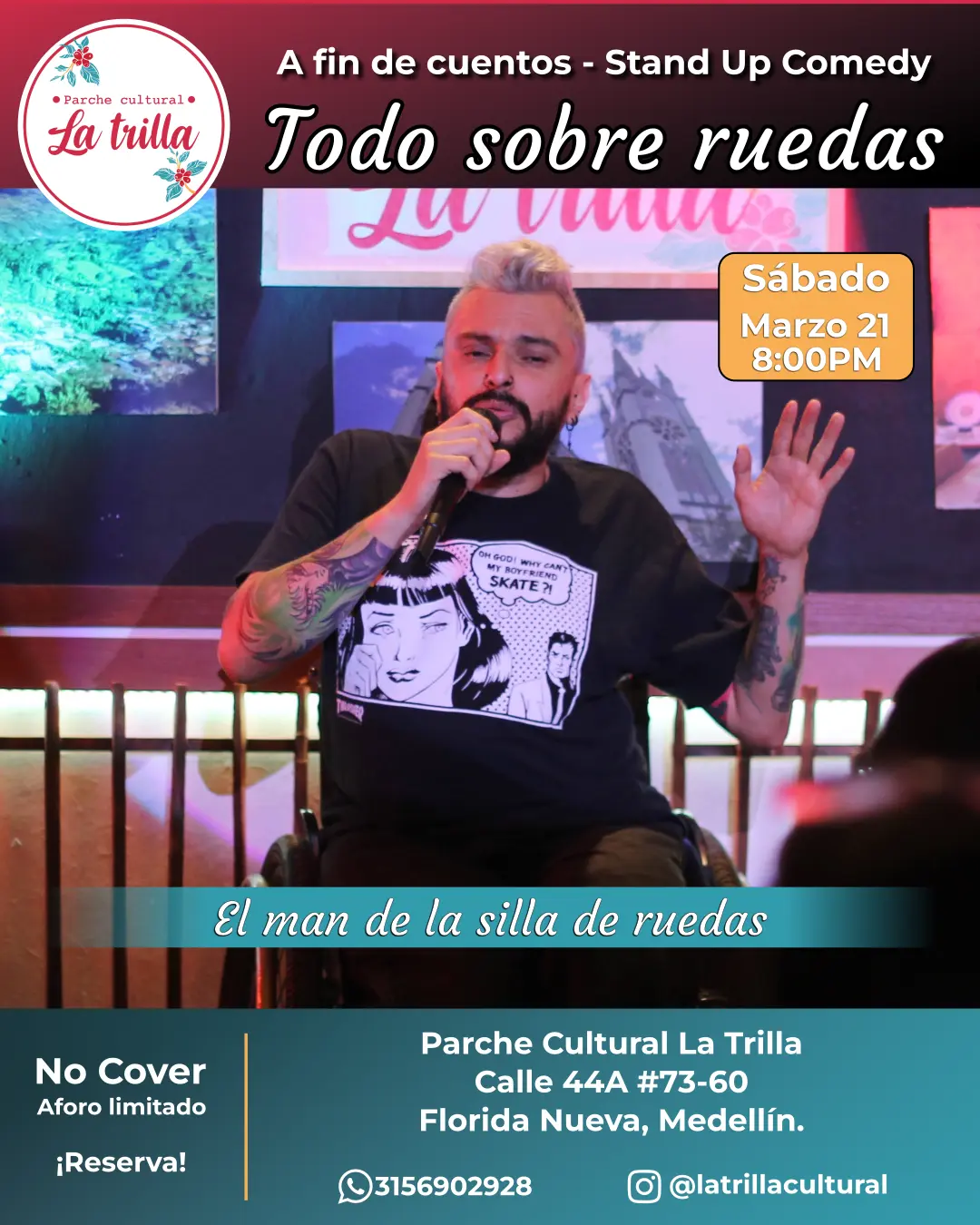 Acompaña a El man de la silla de ruedas en un unipersonal de comedia honesto y crudo. Un show para reírse de los demonios internos y entender que, con el público en frente, hasta los dolores más pesados se sienten distintos.